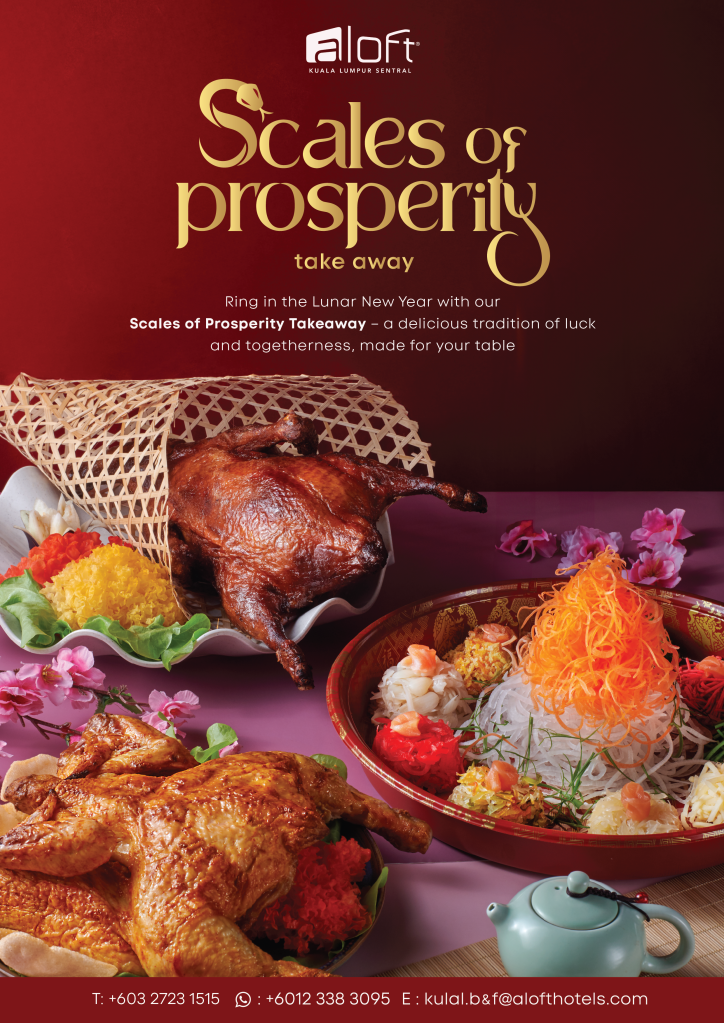 The Scales of Prosperity and Toss to Prosperity takeaway offerings will be available for pre-order from 9 January to 8 February 2025. To place an order, guests can reach out via WhatsApp at +6012 338 3095, call +603 2723 1515, or email kulal.b&f@alofthotels.com. Reservations for these takeaway offerings are required a minimum of 48 hours in advance.
