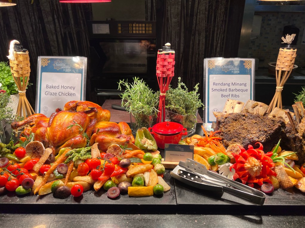 Baked Honey-glazed Chicken: Marinated for 12 hours and baked to perfection, served with Chef’s signature plum sauce.- Rendang Minang Smoked Barbecue Beef Ribs: Infused with authentic Minang rendang spices, served with roasted root vegetables and a rich blend of rendang & barbecue sauces.