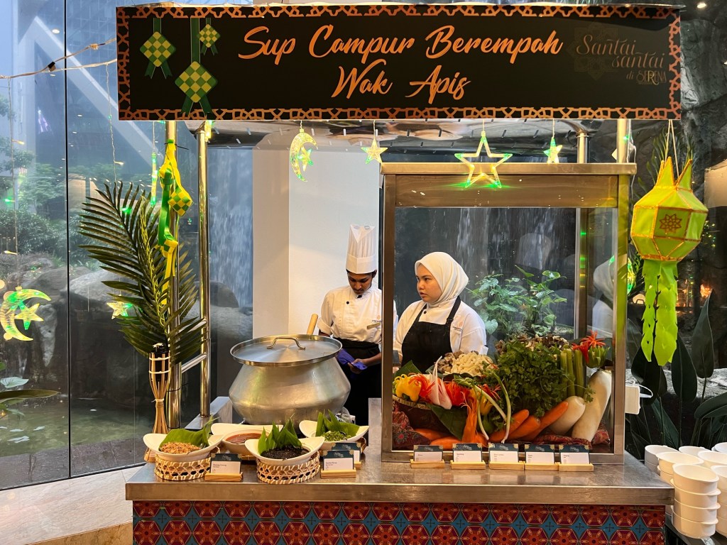 Main courses include selected of traditional Malaysian specialties such as Lemang, Kuah Kacang, Beef Rendang Tok, Bubur Lambuk and Ketupat paired with a premium seafood spread featuring plump prawns , succulent oysters and more