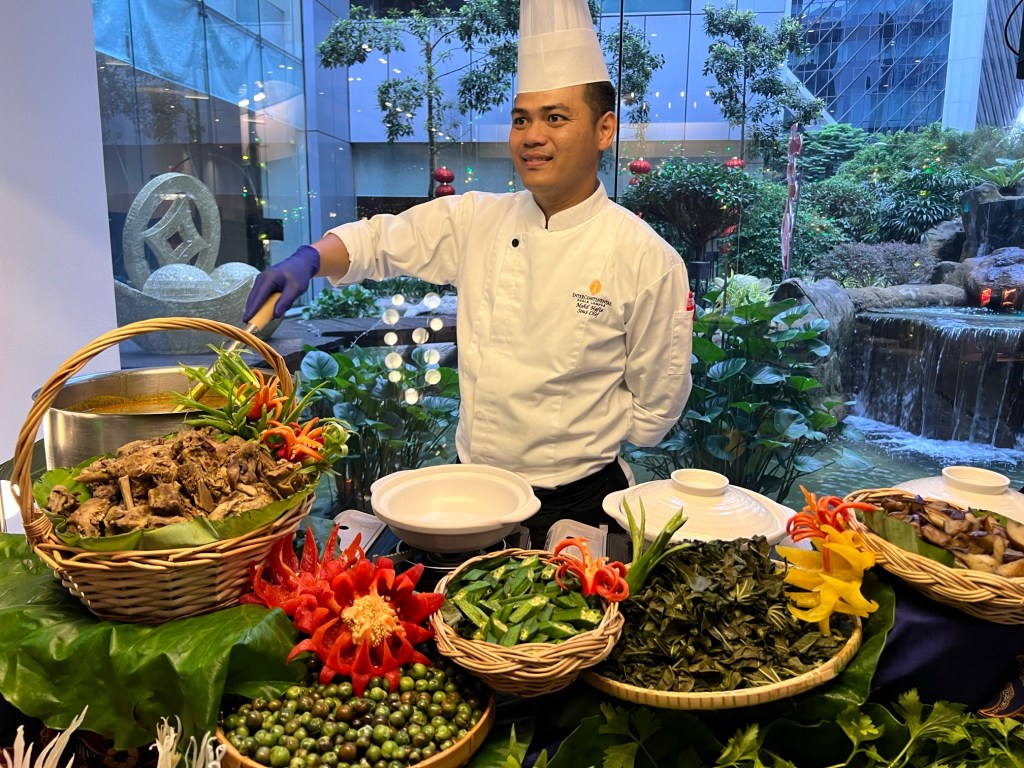 Gulai Assam Rong-style Claypot Roasted Duck: A traditional village dish hailing from Pahang, this classic delicacy features tender duck simmered with unique ingredients such as pea eggplant, tapioca leaves and ladys finger, complemented by the rare seasonal perah fruit and rubber seed.