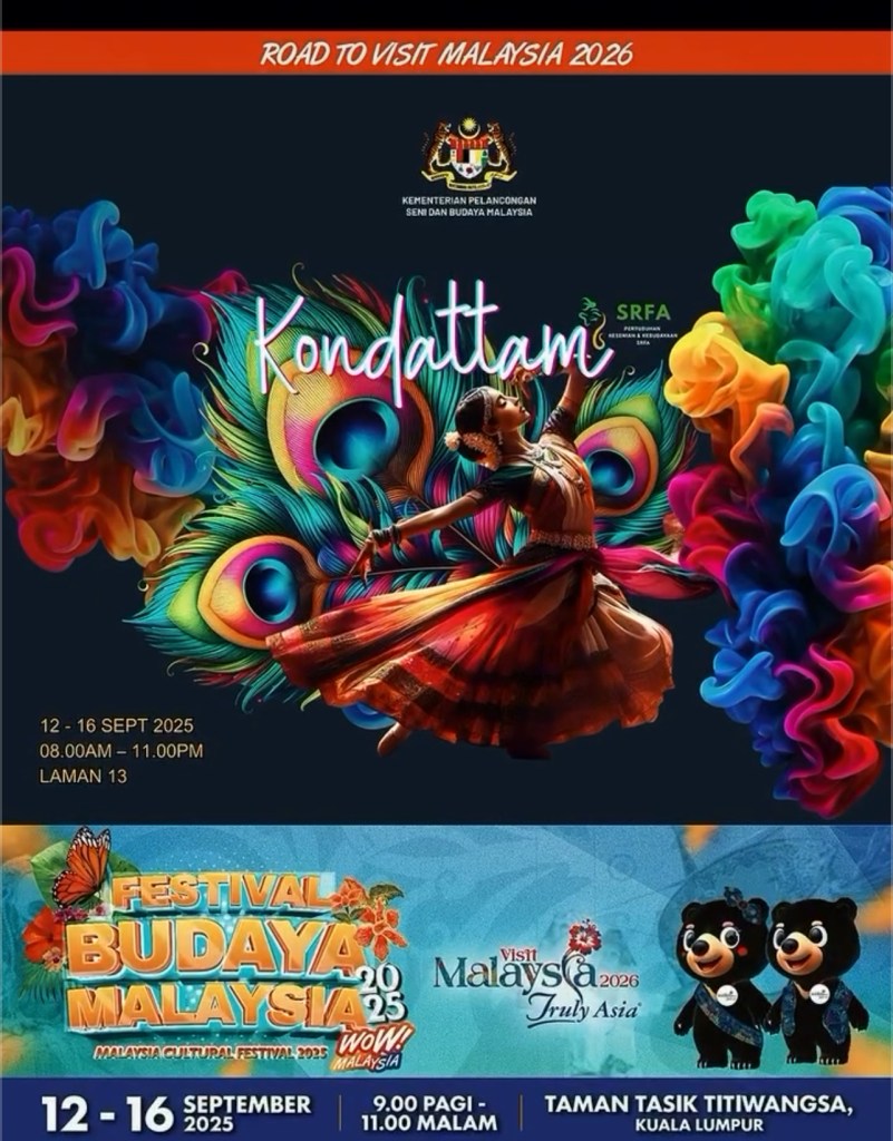 Pesta Kondattam isn’t just another festival… it’s a living showcase of Malaysia’s rich Indian heritage, brought together under one festive roof. From soulful Bharatanatyam performances to the thunderous beats of Urumi Melam, from colourful kolams to flavourful Indian cuisine, every corner of Titiwangsa will be brimming with cultural vibrancy.