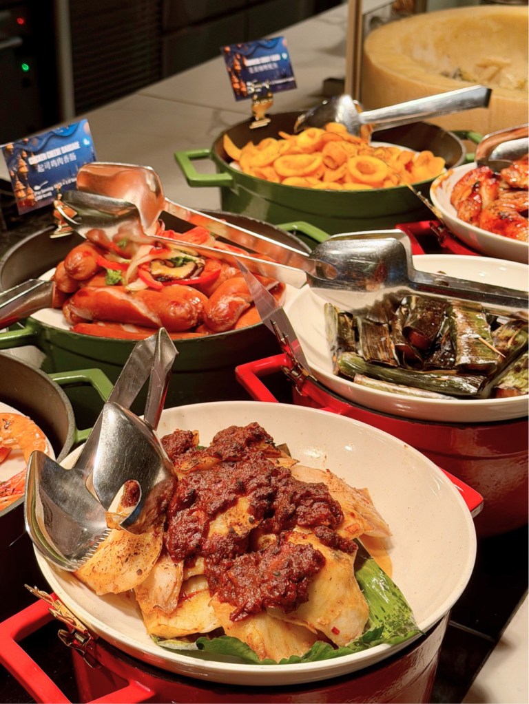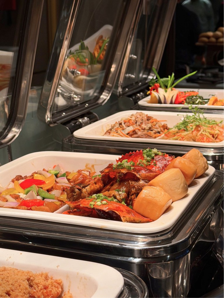 Beyond local flavours, the buffet also travels across borders. A dedicated Sashimi and Sushi counter serves up fresh slices of salmon and tuna, alongside maki rolls and nigiri.