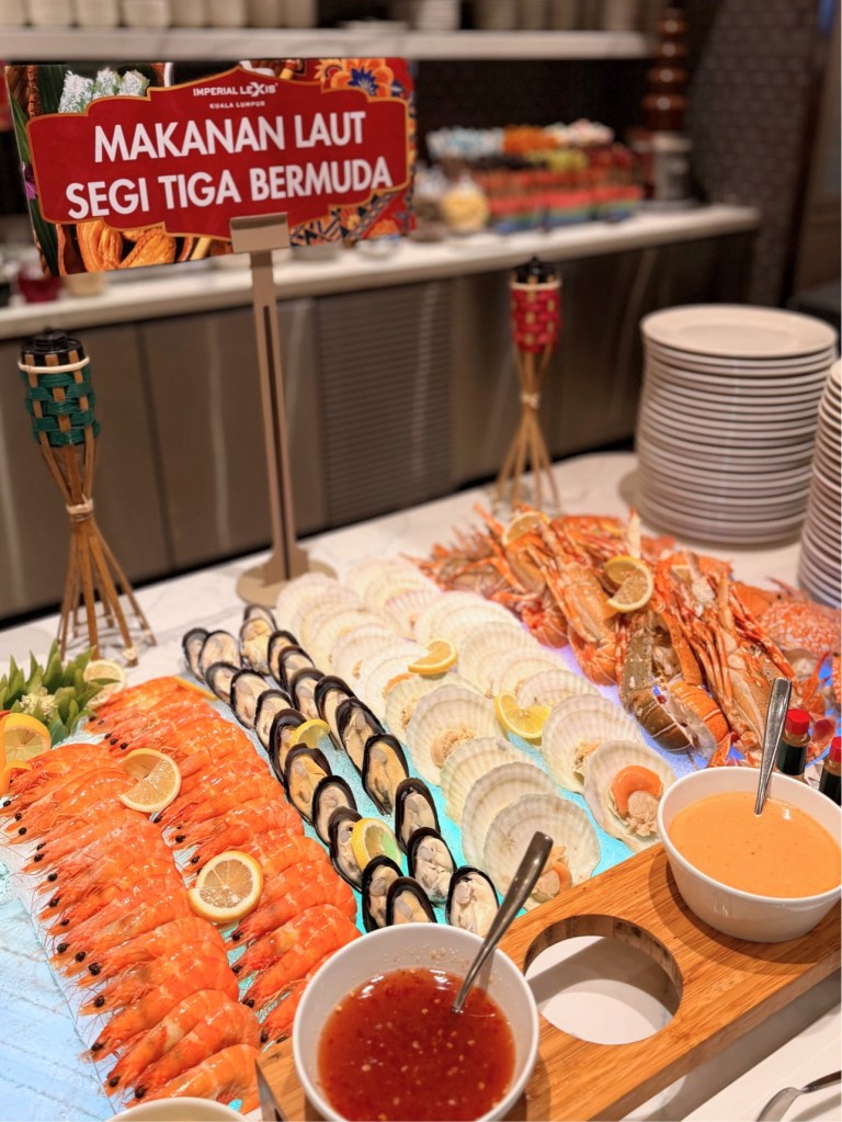 Seafood lovers are especially in for a treat. The Seafood on Ice counter showcases a premium selection of baby lobsters, tiger prawns, scallops, flower crabs and more, making this one of the more indulgent Ramadan buffets in KL this season.