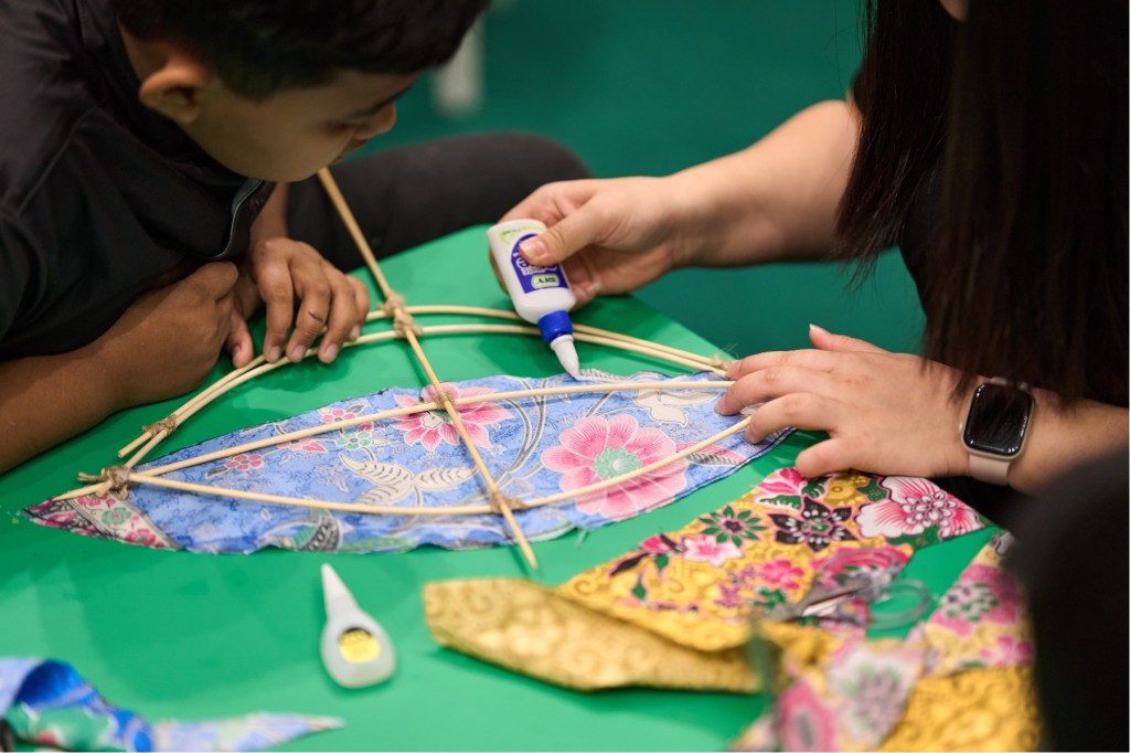 Beyond shopping, the children were also introduced to traditional Malaysian culture through fun hands-on activities. They participated in a Mini Wau Bulan crafting and Ketupat weaving workshop, where they learned about these iconic heritage crafts while creating their own festive pieces.