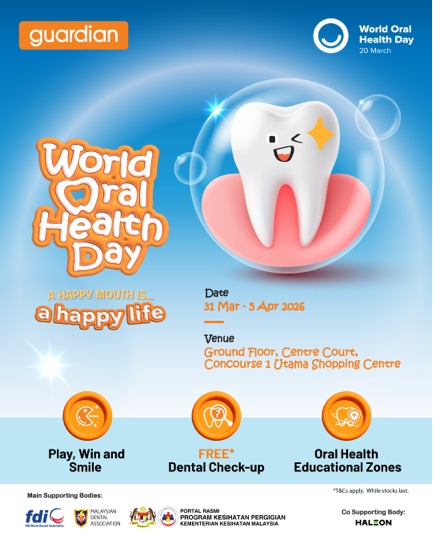 Head over to the guardian Malaysia World Oral Health Day event, learn from the experts, enjoy exclusive rewards, and take the first step towards a healthier smile.
